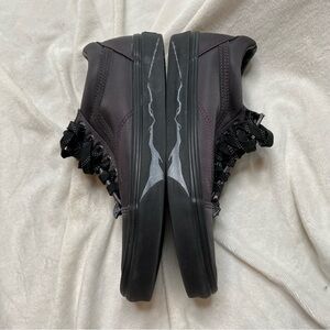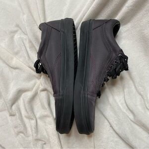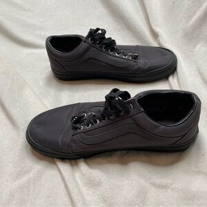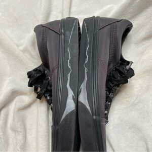 Vans Harry Potter Deathly Hallows Old Skool Purple Black Lace Up Sneakers. Synthetic upper shoe with satin sheen, sliver metallic wizard wand on outer soles, Elder Wand symbol on back heel. Insoles have design as well. Excellent condition. Worn twice before I realized I needed a different size. Amazing for any Harry Potter fan!!