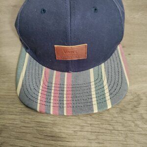 Vans Hat Cap Snapback Blue Red Adjustable Adult Spell Out Leather Patch