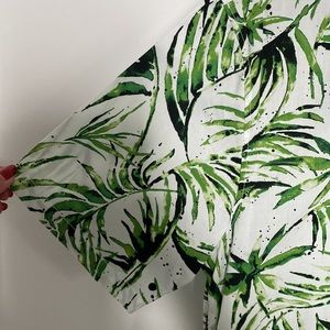Vans Hawaiian Del Playa short sleeve Button down shirt.🌺 Green fronds against a white background.