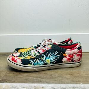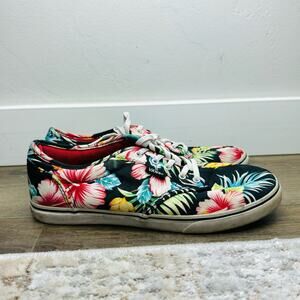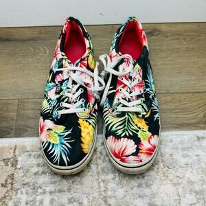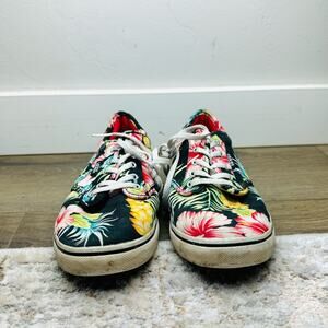 Vans Hawaiian Floral Skate Shoe black base lace up woman’s 7.5