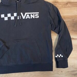 Keywords: Vans hoodie, womens hoodie, black hoodie, pullover hoodie, checkerboard, Vans logo, skate hoodie, graphic hoodie, large hoodie, mens sweatshirt, casual hoodie, streetwear, comfortable hoodie, cotton blend hoodie, Vans apparel