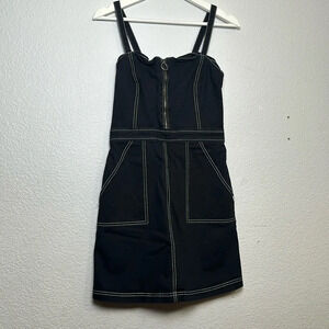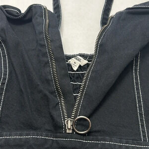 Vans In The Know Black White 1/2 Zip Denim Dress Womens Size Medium Grunge Goth
