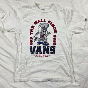 Vans Its Time to Bolt Boys Size Small White Shirt Casual School Walking Outdoors