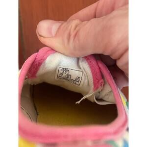 Add some color to their step with these fun and vibrant Vans Authentic low-top sneakers. Featuring Vans’ classic checkerboard pattern in a rainbow multicolor design, trimmed in pink with white laces and signature waffle soles. Comfortable and stylish, these sneakers are perfect for everyday wear, skate style, or casual outings.