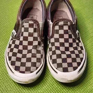 Vans Kids Brown and Black Checkered Casual Slip On Skateboard Shoes Size 1.5
