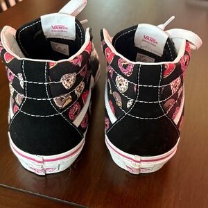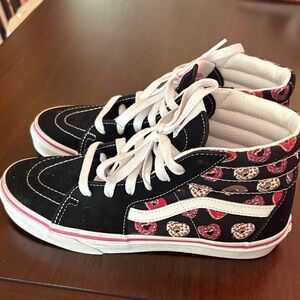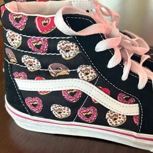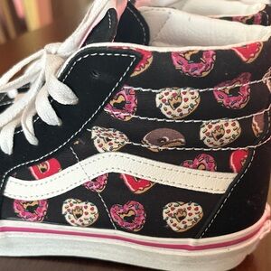 Fun Vans sneakers with a playful donut pattern. Black and pink colors. Perfect for Jr’s size 5 1/2 in good condition only wore once no box.