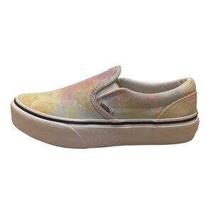Bright pastel tie-dye slip-on sneakers with durable canvas upper, cushioned insole, and classic Vans branding. Made for casual style and everyday wear.