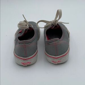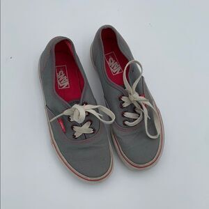 Stylish Vans sneakers for kids. Gray exterior with pink accents. Comfortable and durable design.