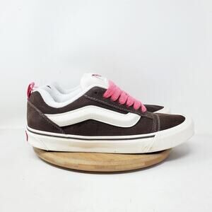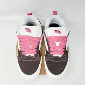 Vans Knu Skool Shoes Womens 10.5 Brown Suede Pink Laces Fat Tongue Skate Sneaker