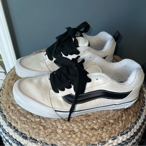 Vans White and Black Suede Lace Up Sneakers. Light marks shown in pics. Overall Good Used Condition 🚭