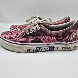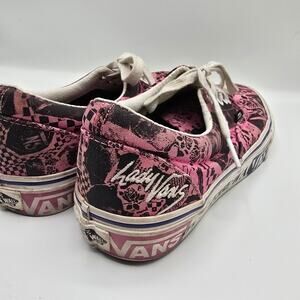 Vans Lady Vans pink and black graphic lace up low top canvas shoes men's size 6.5. Some embroidery, the canvas looks a little faded in some spots, in good condition.