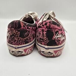 Vans Lady Vans pink black graphic embroidered lace up canvas shoes men 6.5
