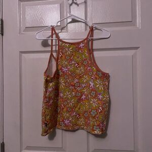 Details: retro funky floral print, cotton blend tank, halter neck, thin straps, loose fitting, logo is in great condition