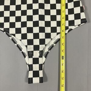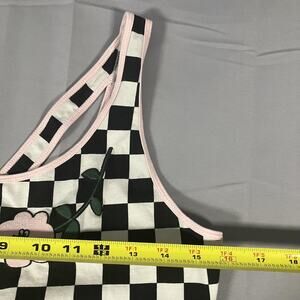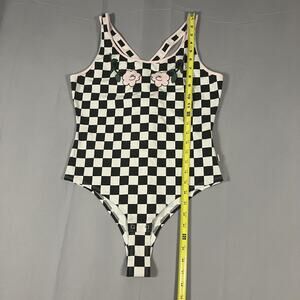 Vans Lazy Oaf Bodysuit Womens Large Black White Checkered Flower Embroidery Tank