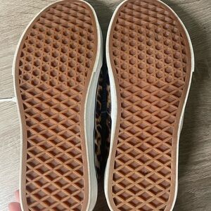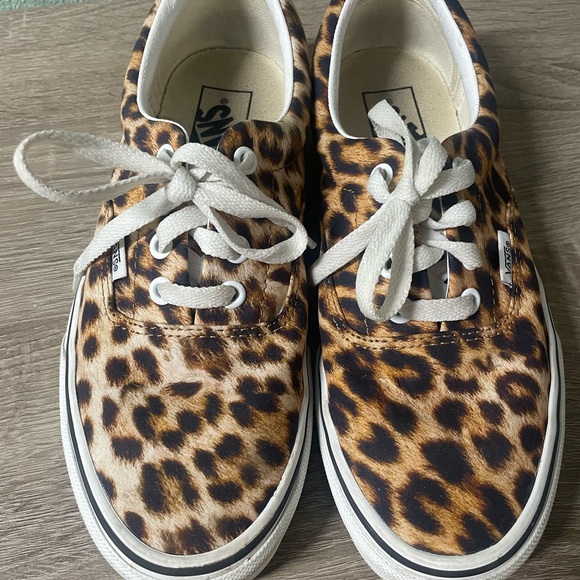 Vans sneakers with a striking leopard pattern. Gently worn, lots of life to them!