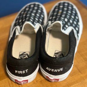 Rare Limited Edition: First Avenue collaborated with Vans to create a custom slip-on Vans shoe. The custom look of the shoe is made to mimic the famous look of the painted stars outside of the legendary venue that put Minneapolis on the map in the music industry. The design features the iconic stars that cover the exterior wall of First Avenue venue with a single gold star representing Prince.