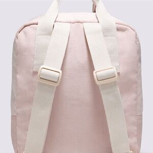 Chic Vans backpack in light pink corduroy. Features front zip pocket and durable handles.