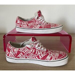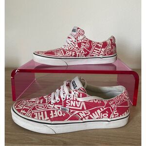 Vans Low Top Sneakers Men 8 Red White Logo Print Streetwear Skate Style Y2K