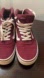 Vans high-top sneakers in maroon. Features white laces and trim. Ideal for everyday style.