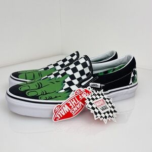 Vans Marvel Incredible Hulk Skate Shoes Slip on Low Checkered Mens 9.5 Womens 11
