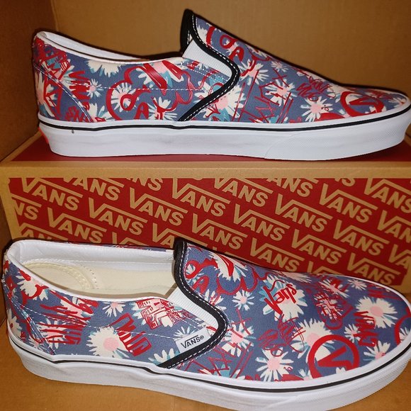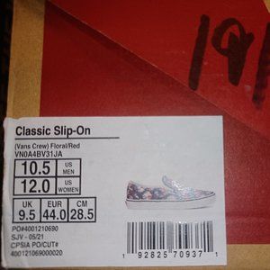 Vans Men's 10.5 Classic Slip-On Crew Floral/Red VN0A4BV31JA