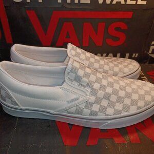 Vans Men's 11.5 Checkered Slip-On Metallic True White VN000CT5W00 Checkerboard