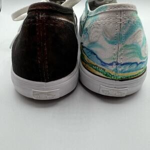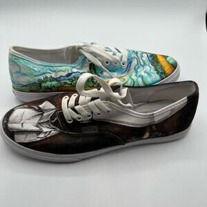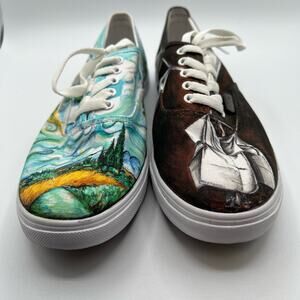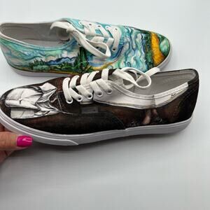 Custom Made Vans Size Mens 6.5 Womens 8 Shoes Sneakers Blue Black Painted Art Canvas Scenes Lace Up Streetwear Skater Artcore Artistic Indie