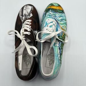 Vans Mens 6.5 Womens 8 Shoes Sneakers Blue Black Art Scenes Customized Skater