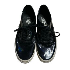Vans Men's Black Patent Leather Tie Up Lace Up Sneakers Size 10