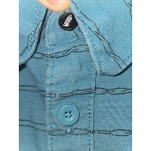 Vans Mens Blue Short Sleeve Button-Up Shirt Large - Barbed Wire Print
