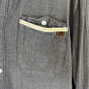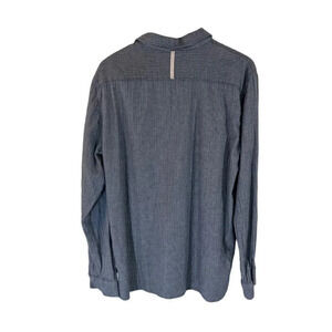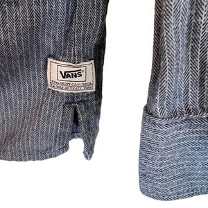 Vans Mens Button Up Shirt Large Blue White Striped Front Pocket Logo 100% Cotton