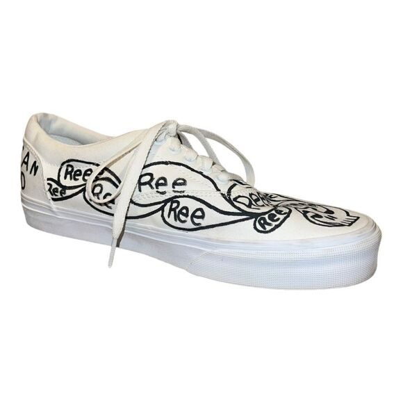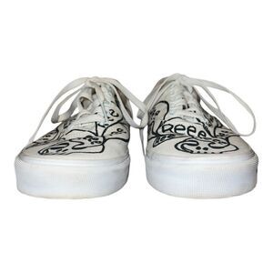 Vans Mens Custom Painted Low Top Sneakers Ree Skeletons White Black 9.5 EUC