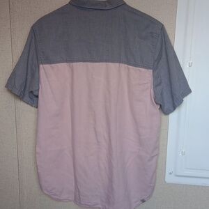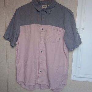 Vans Mens L Gray and Pink Button Up Short Sleeve Skateboarder Hipster City Cool