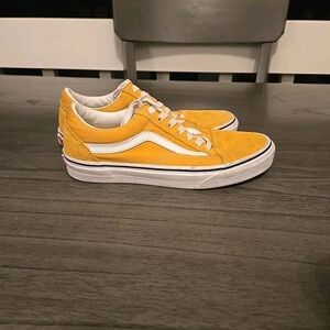 Bold mustard yellow Vans sneakers. Classic design with white accents. Ideal for everyday wear.
