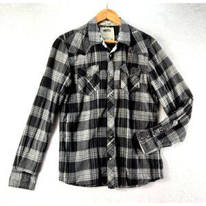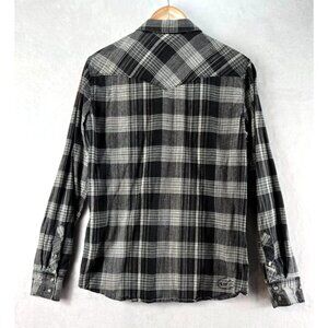 Vans Mens Shirt Gray Black Plaid Snap Front M Western Casual Long Sleeve Pockets
