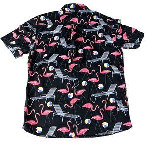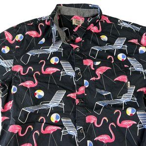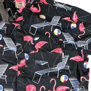 Vans Mens Shirt Size Large Black Flamingo Beach Party Button Short Sleeve Casual
