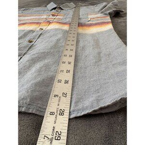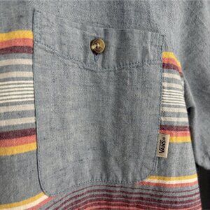 Vans Men's Short Sleeve Striped Button-Up Shirt M Blue Linen Blend Skater Skate