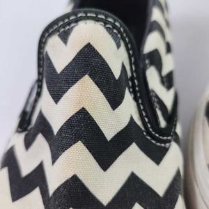 Vans Mens Skate Shoes Black White Chevron Canvas Low Top Slip On Casual M7 W8.5