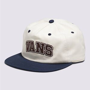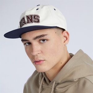 The Property Of Low Unstructured Hat is a 5-panel cap featuring contrast details and a bold embroidered Vans logo on the front.