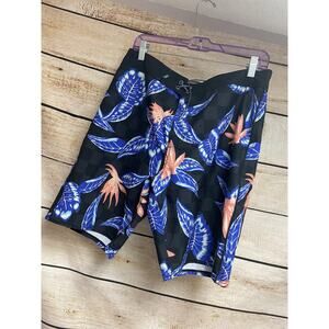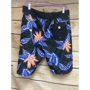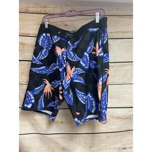 Vans Mens Swim Trunks Size 33 Black Floral Swimming Suit Surf Shorts Flat Front