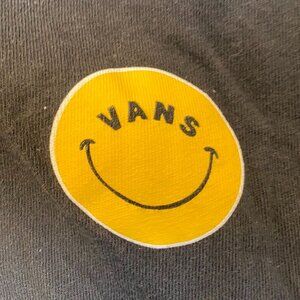 This 100% cotton T-shirt from Vans features a fun, eye-catching design with a yellow smiley face graphic and "Off The Wall" text on the back. The lightweight, breathable material ensures comfort, while the casual black color pairs effortlessly with various outfits, making it a versatile wardrobe addition.