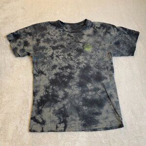 Vans Mens T-Shirt Medium Tie-Dye Gray & Black Short-Sleeve With Yellow Embroider
