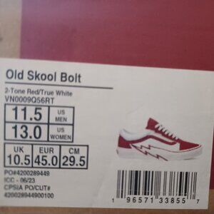 Vans Men's U.S. 11.5 Old Skool Bolt Red/White Classic Suede VN0009Q56RT Rare