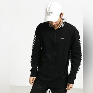 Vans Men's Versa Quarter Zip Pullover Sweatshirt Black White Checker