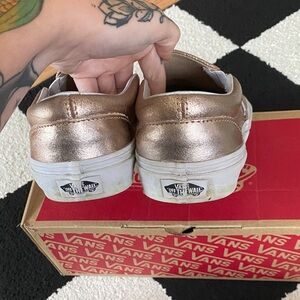 Faux Leather Metallic Rose Gold Classic Slip-On Women’s Size 8 (Men’s size 6.5). All marks in metallic included in pictures. Comes with original box.