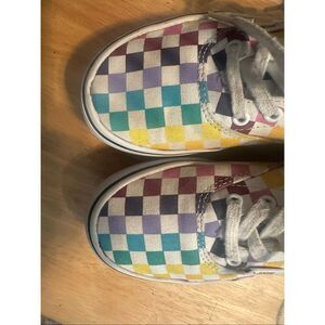 Vans Missy Girl's Multicolor Checkerboard Rainbow Lace-up Sneakers Size 1