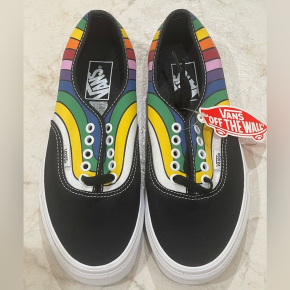 Vans authentic style shoes. Black base with multicolor detail. New with tags, never been worn. Size women’s 9.
