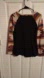 Viamor southwest style long sleeve sweater. Featuring a mild multicolor design on the sleeves, collar, and pocket with a dark grey base. Cute and comfy.