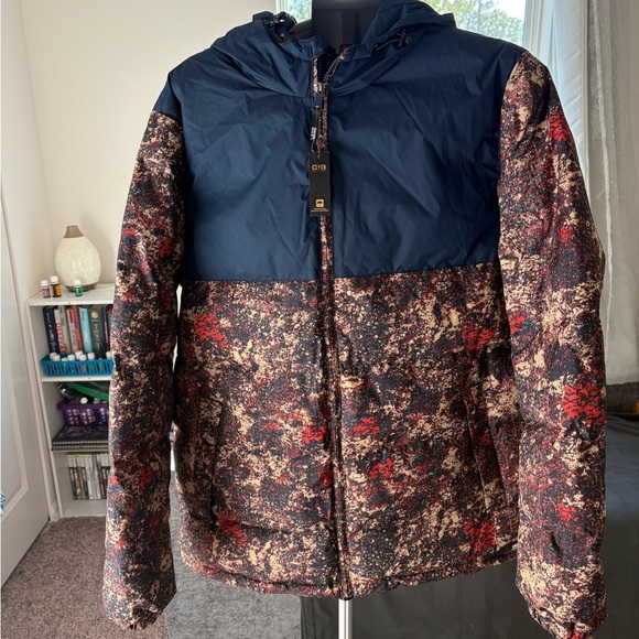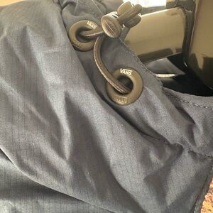 Stylish Vans puffer jacket. Features a multicolor design with a navy top. Perfect for cold weather.