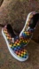 Vans slip-ons with a bold checkered pattern. Features vibrant colors and classic style.